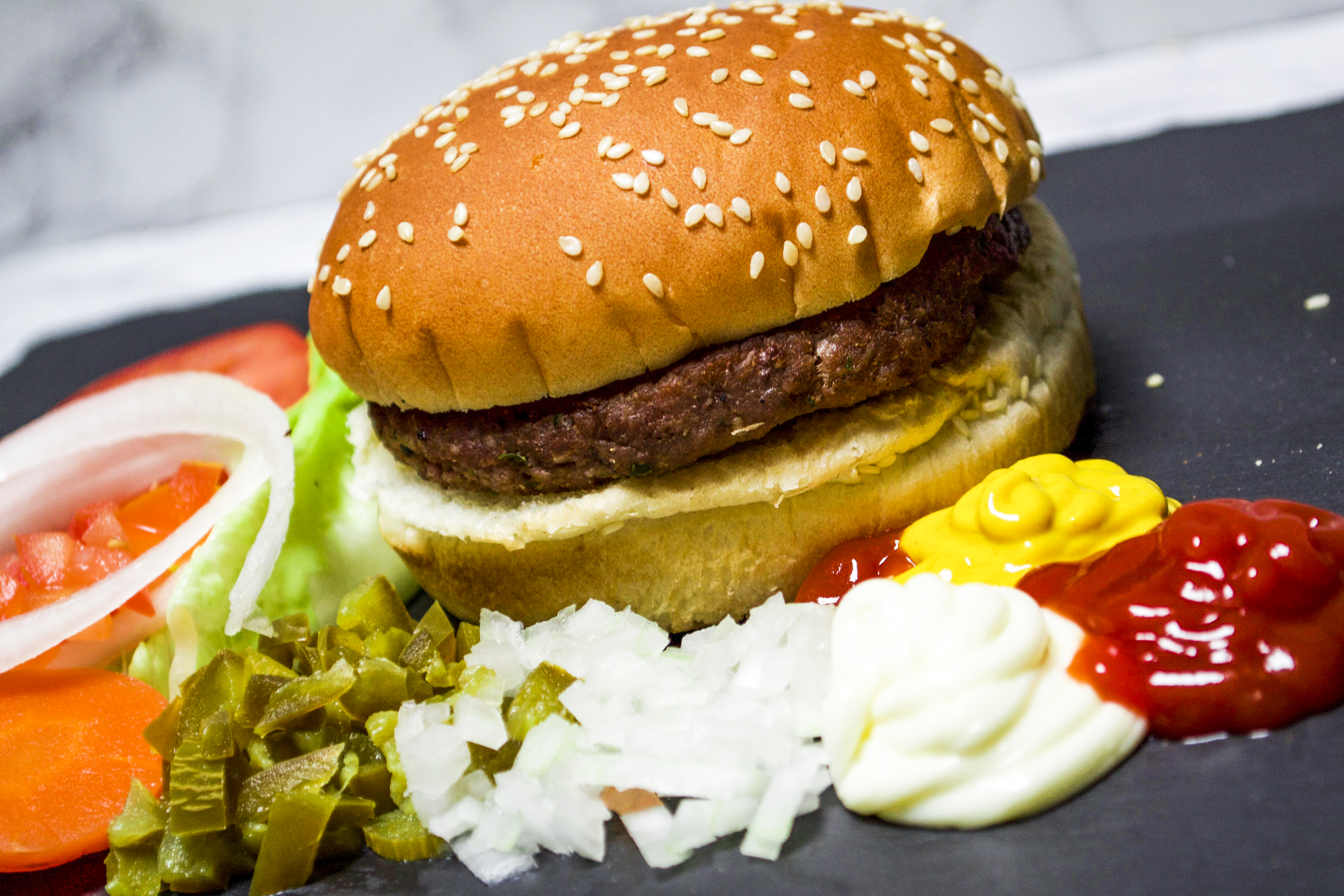 Jugosas hamburguesas de carne con pan